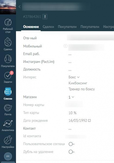 Работа с клиентской базой ведется в CRM. Все лиды из подключенных каналов попадают в систему. История коммуникации (переписка, записи звонков) по каждому клиенту сохраняется в сделках. При этом работу можно вести из одного окна, не переключаясь между сервисами.