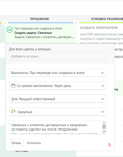 Настроена интеграция с каналами коммуникации. Работа ведется из одного окна, история сохраняется по каждому контакту и сделке.