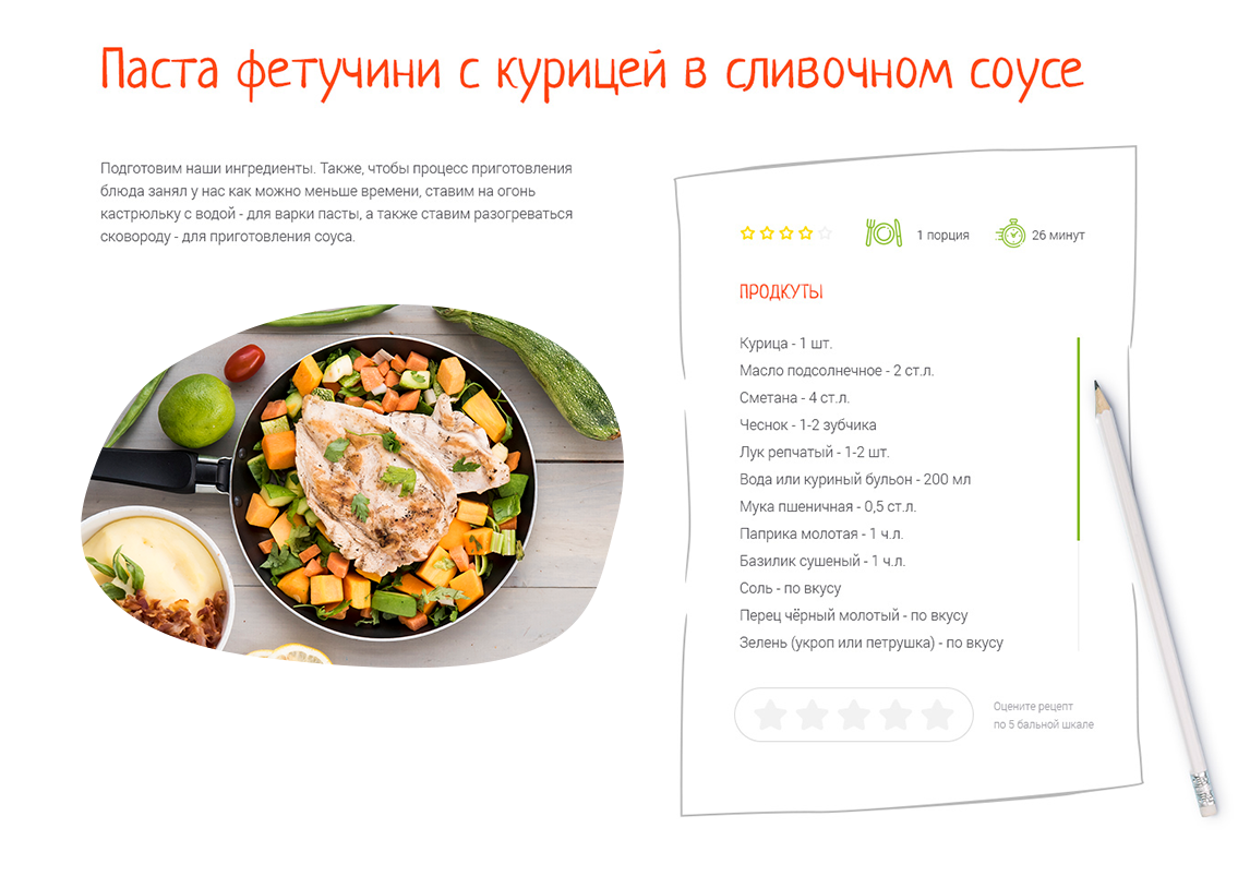 Например, при создании макета дизайна для детальной страницы рецепта мы сделали пошаговую инструкцию.
