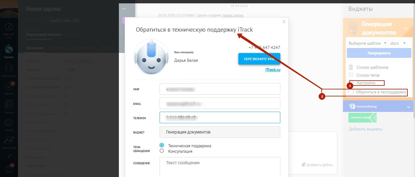 В разделе Обращение в тех. поддержку, напрямую задавайте вопросы своему персональному менеджеру.