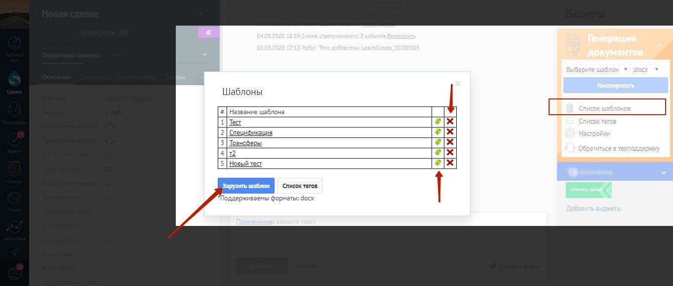 - Нажмите на кнопку «Загрузить шаблон»